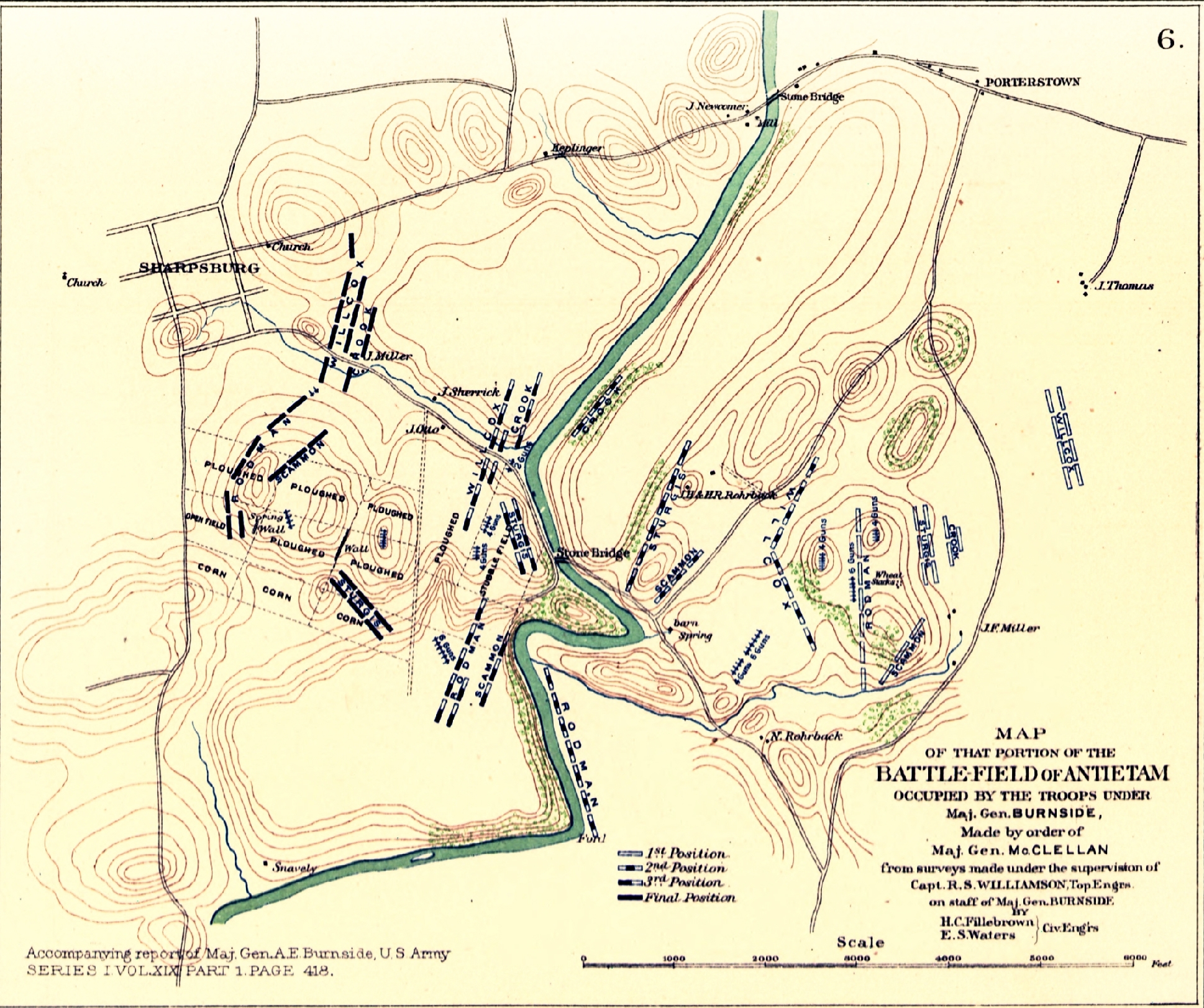 The maps were drawn both during and after the Civil War by Union and Confederate engineers, draftsmen, and aided often by the generals themselves. Cartographers later added to the collection to fill voids in the absence of maps accompanying battle reports. The maps are quite detailed, showing troops positions, defense lines, redoubts, fortifications, signal stations, lines of march, landmarks, and topography. Some are still shown as rough sketches, while others are cartographic masterpieces. A plate index is provided to facilitate in locating the maps, and all are available in jpeg high resolution 300 dpi. The entire collection is in public domain and can be copied, published, framed, or retained for research.