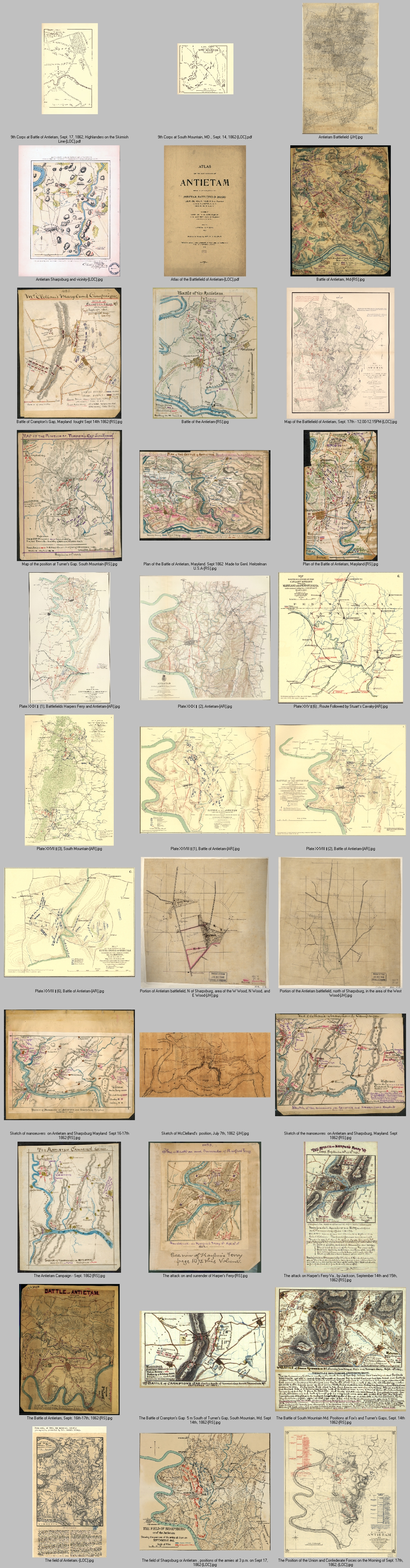 NEW...Theatre of operations, Maryland Campaign, September 1862. Maps depict Confederate and Union troop movements in Maryland and Virginia during the week leading up to the Battle of Antietam. Statement at foot of base-map title is lined over in black ink: Taken from atlas accompanying war records. The base maps cover central Maryland including the regions of Baltimore, Washington D.C., Harper's Ferry, and by northern extension to Gettysburg (Pa.). <<Sample Images>>