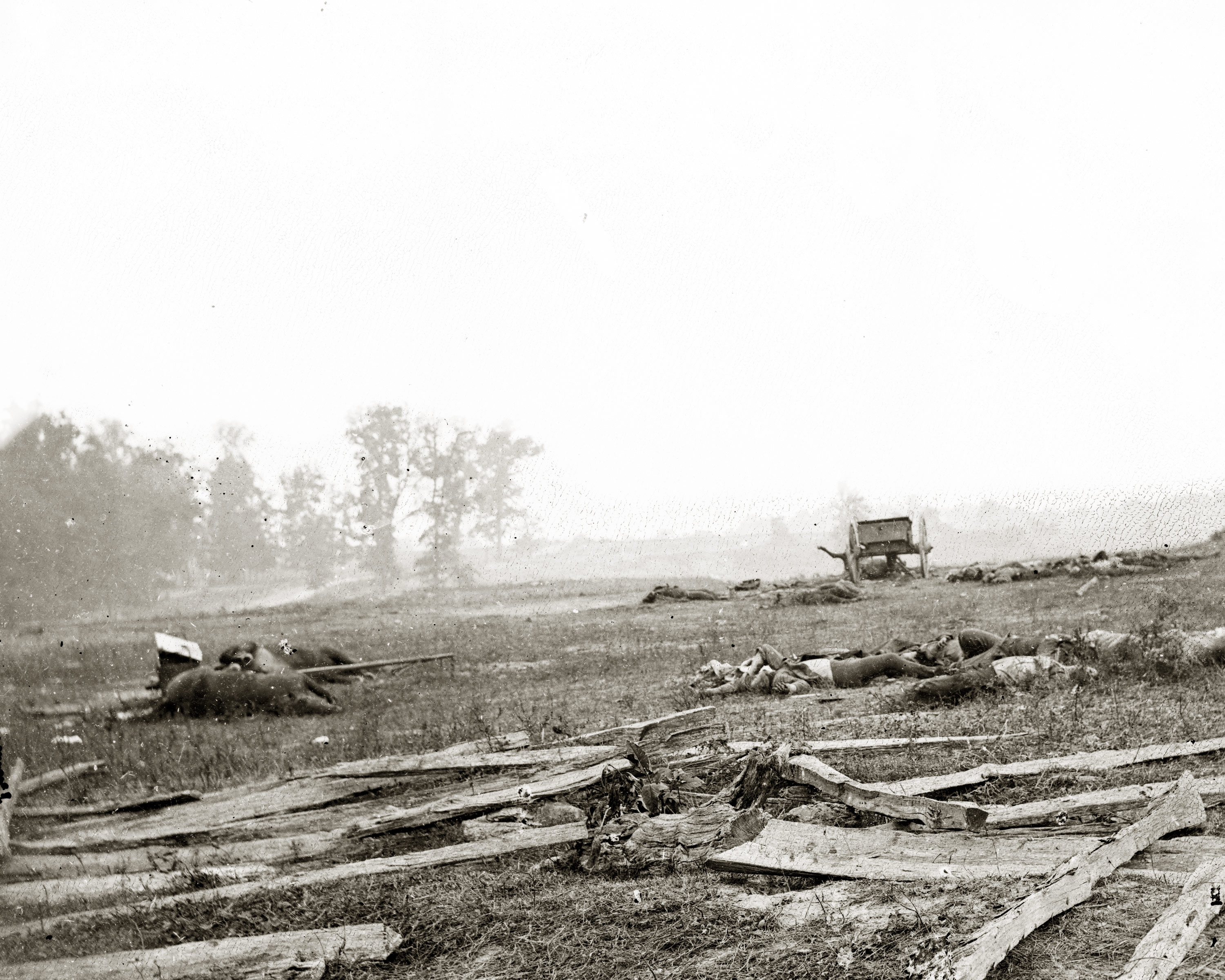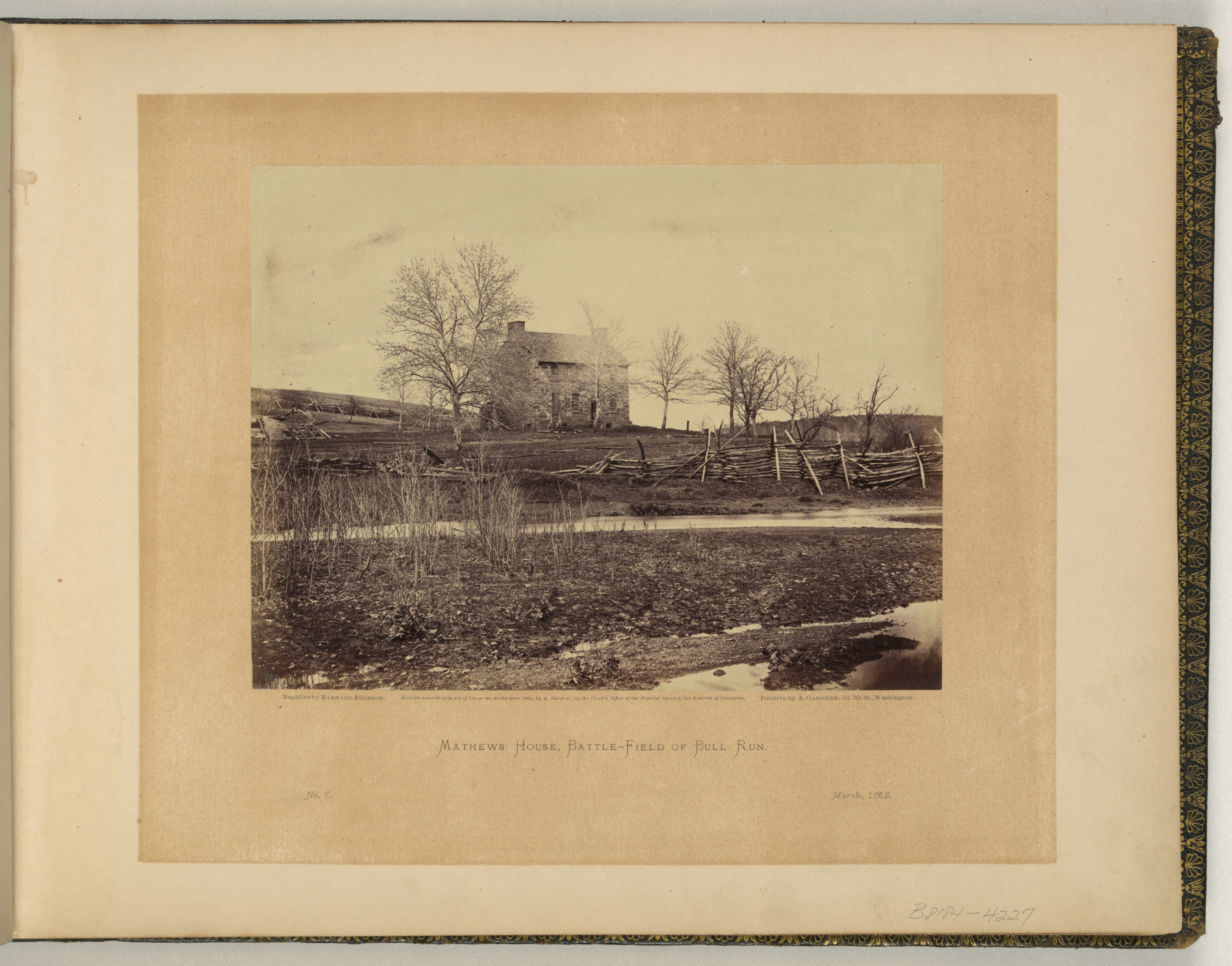 Gardner’s Photographic Sketch Book of the War. (Washington: Philp & Solomons, 1865–66) was published in two editions, one in 1865 and the other in 1866, both editions consisting of two volumes of fifty albumen print photographs, each with a descriptive caption, generally believed to have been written by Gardner himself. Historians estimate that no more than 200 copies of the Sketch Book were produced. The small print run is due primarily to the difficulty of mass-producing photographically illustrated books in the 1860s. <<Sample Photo>>>