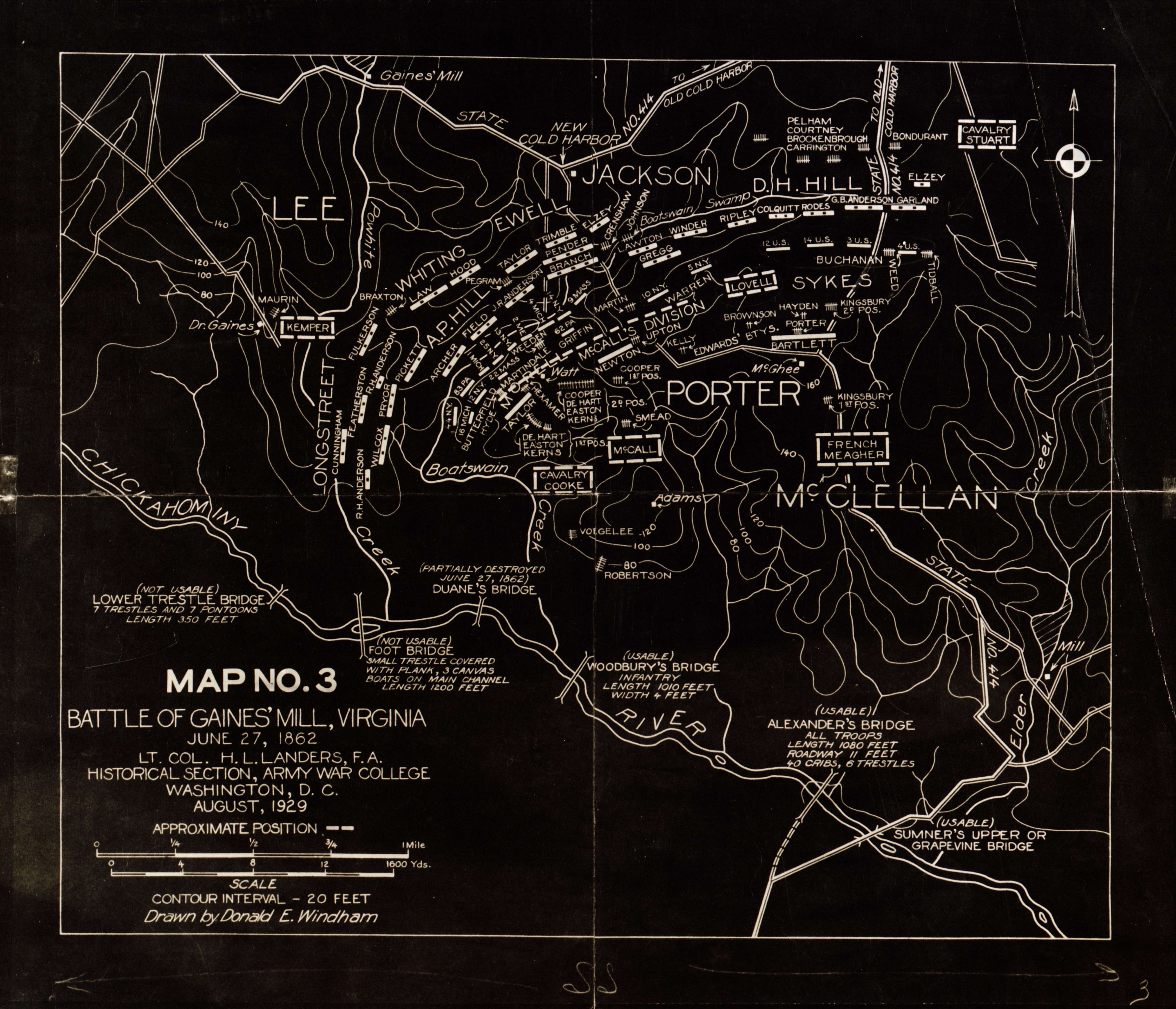 Seven Days' battles, Virginia, June 25-July 1, 1862. Set of 10 maps made from data compiled by officers of the Federal Army during the war. Shows troop positions and fortifications in the Richmond region and names of some residents. Relief shown by contours. <<< Map Sample - Battle of Gaines' Mill, Va., June 27,1862 >>>