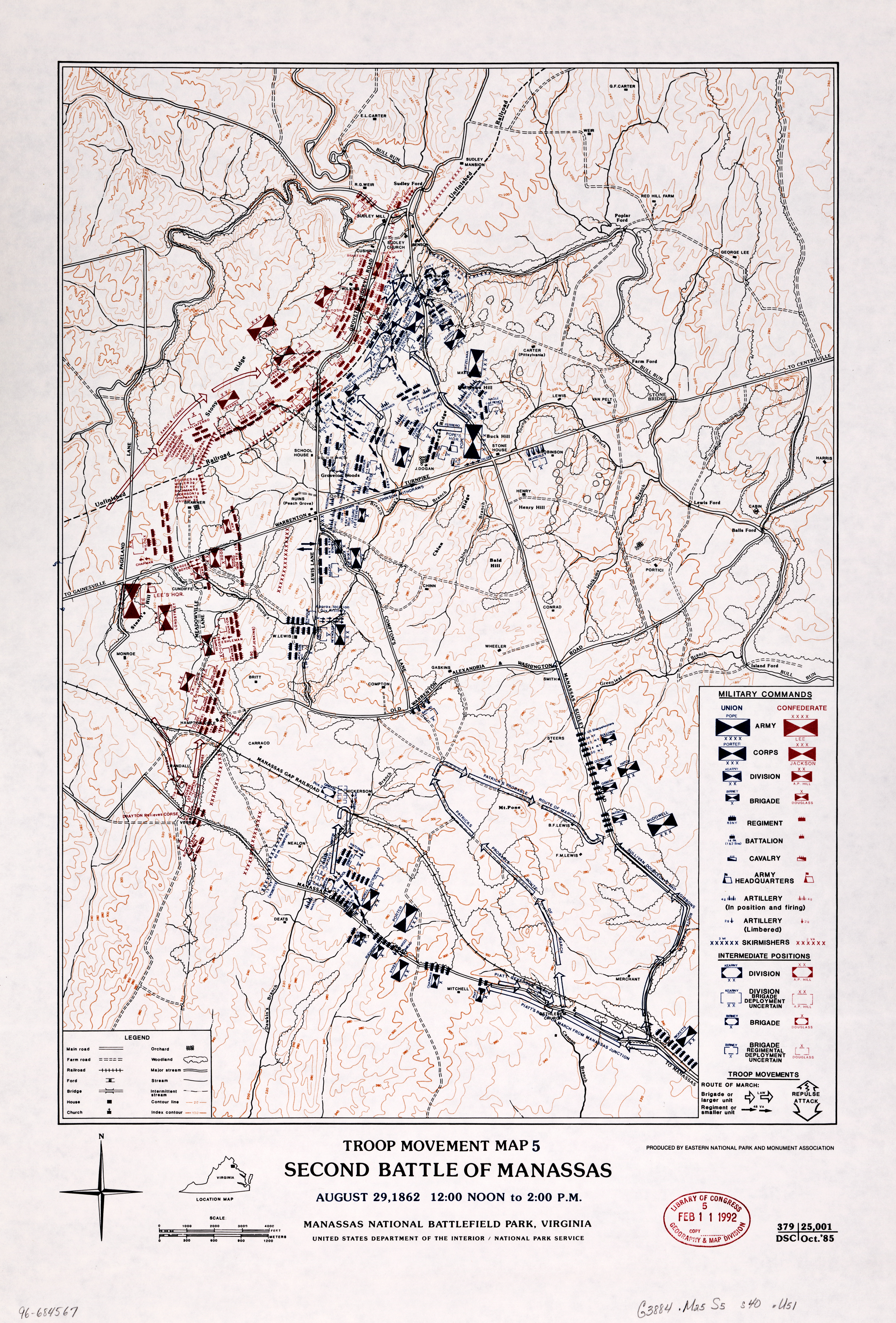 NEW...Troop movement map ... Second Battle of Manassas, August 28, [thru August 30] 1862 ... Manassas National Battlefield Park, Virginia. <<Sample Image>>