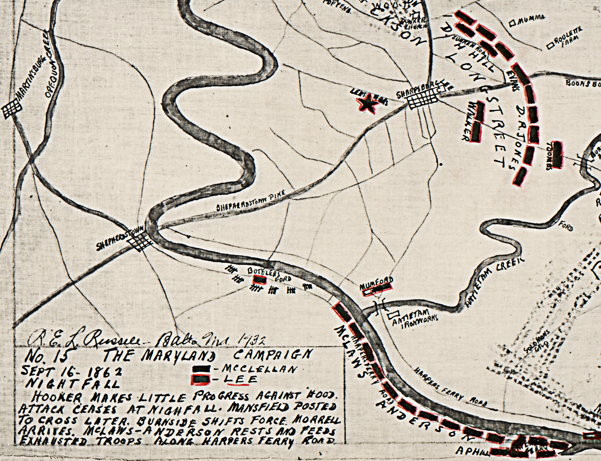 Thirty Pen and Ink maps of the Maryland Campaign, 1862: Drawn from descriptive readings and map fragments by Robert E. Lee Russell, 1932. <<Sample Map Detail>>>
