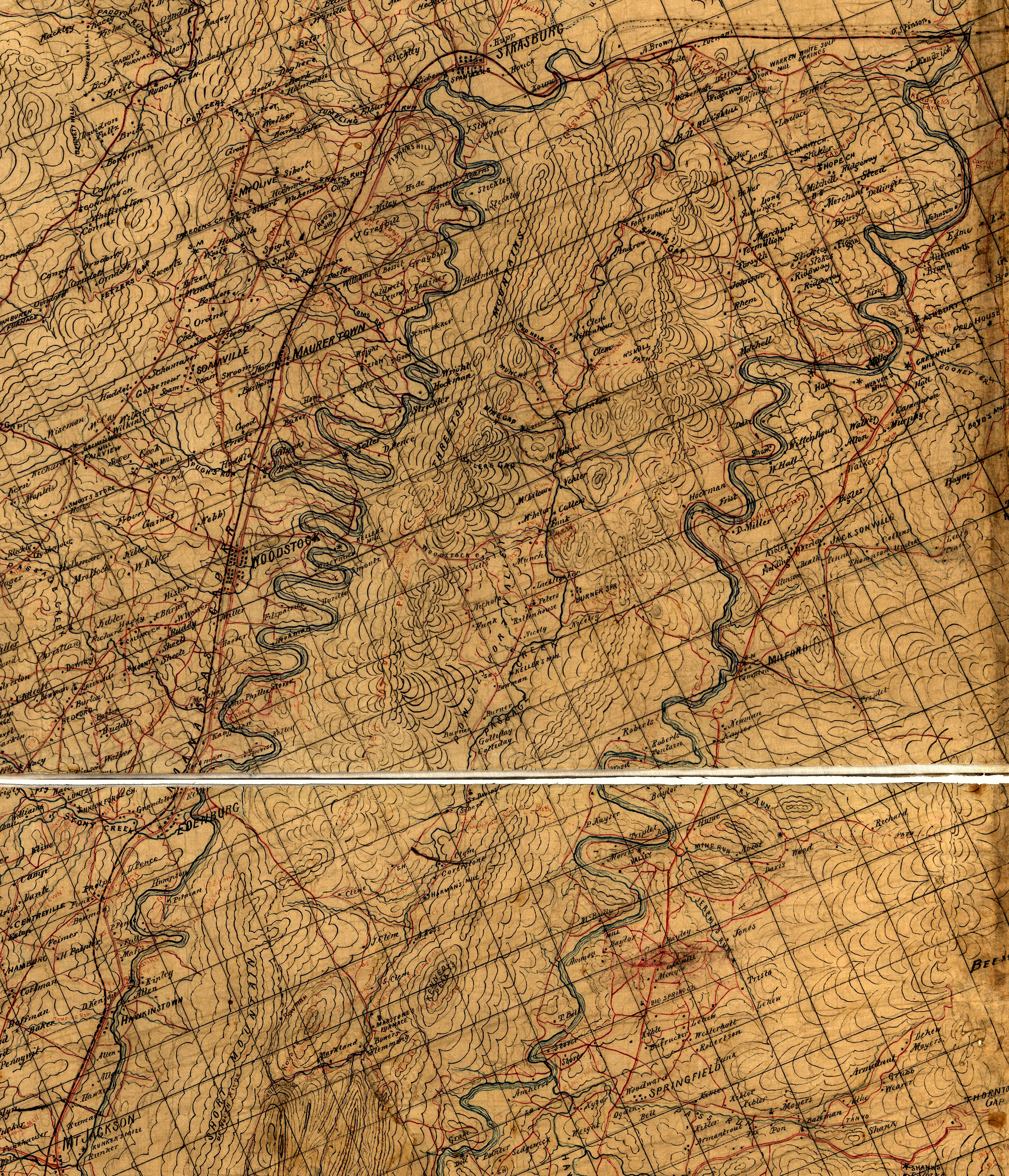 NEW...Miscellaneous lithographed proof sheets of areas in Virginia field surveys compiled and printed by the Engineer Department, Army of the Potomac. These are unnumbered, untitled lithographed proof sheets that depict areas in Virginia, particularly around towns like Dumfries, Acquia, and Stafford, as well as Warrenton and Bristoe Station. The maps, compiled and printed by the Engineer Department, Army of the Potomac, during the Civil War, include details like towns, roads, railroads, rivers, and even houses with residents' names. Relief is shown using hachures. <<Sample Images>>