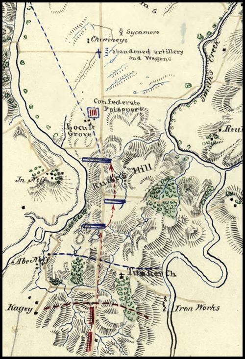 Map Detail #1: Sketch of General Rosser's attack on Federal Cavalry at Rudes's Hill.
