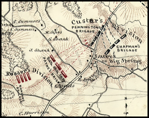 Map Detail #4: General Rosser's night attack of Custer's Division at Lacey's Springs.