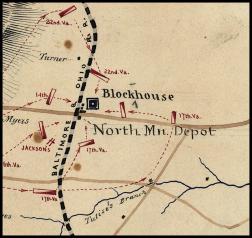 Map Detail #6: Map of the Capture of South Mountain Depot, Monday, July 4th, 1864.