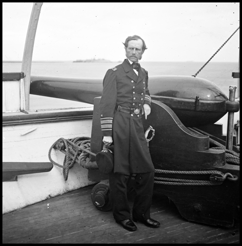 Photo Detail: Rear Admiral John A. Dahlgren standing by a Dahlgren gun on deck of U.S.S. Pawnee.