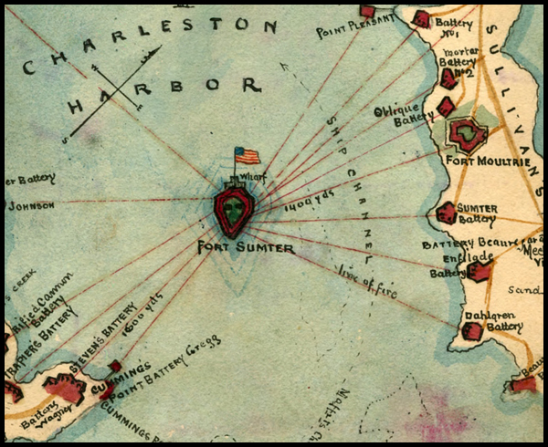 Map Detail: Charleston Harbor S.C.. Bombardment of Fort Sumter. From a map by Robert Knox Sneden