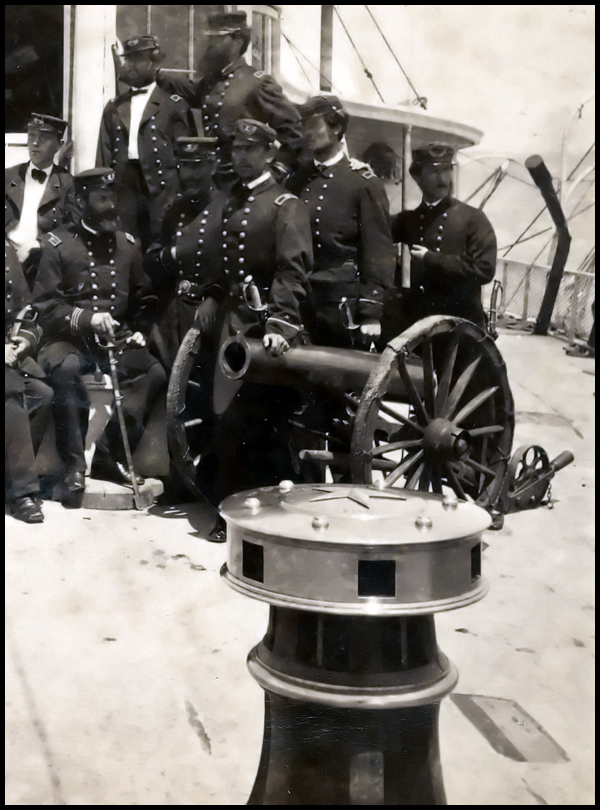 Photo Detail: Captain Gillespie and officers of flagship Philadelphia, Charleston Harbor, S.C.