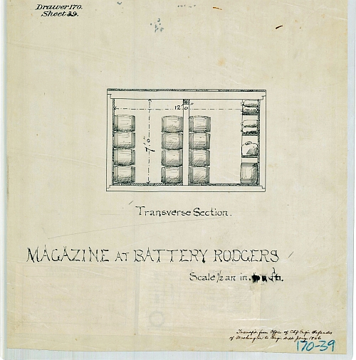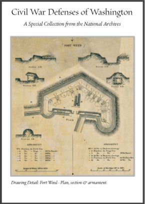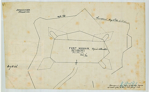 The Civil War Defenses of Washington from the National Archives refers to a series of forts and smaller earthworks that ringed the city of Washington, DC during the Civil War. These were designed to protect the nation’s capital from attacks by Confederate forces. There are for some better-known forts like Fort Stevens, Fort Totten (near the Fort Totten Metro Station), Fort Ward, and Fort DeRussy (in Rock Creek Park), but also for many smaller and lesser-known fortifications scattered throughout the surrounding areas. The plans for the forts range from hand-drawn manuscripts and rough sketches (like the plan for Fort Stevens above) to finished and often quite ornate and beautiful drawings. While many of the plans show the overall layout and design of the forts, others show architectural details for barracks buildings, power magazines, and other specific structures within or around the forts. (570 items)