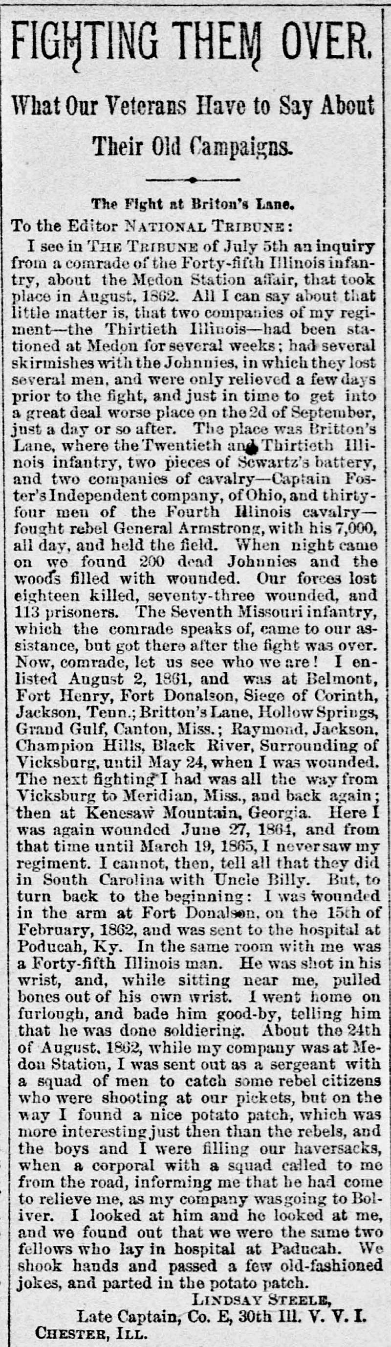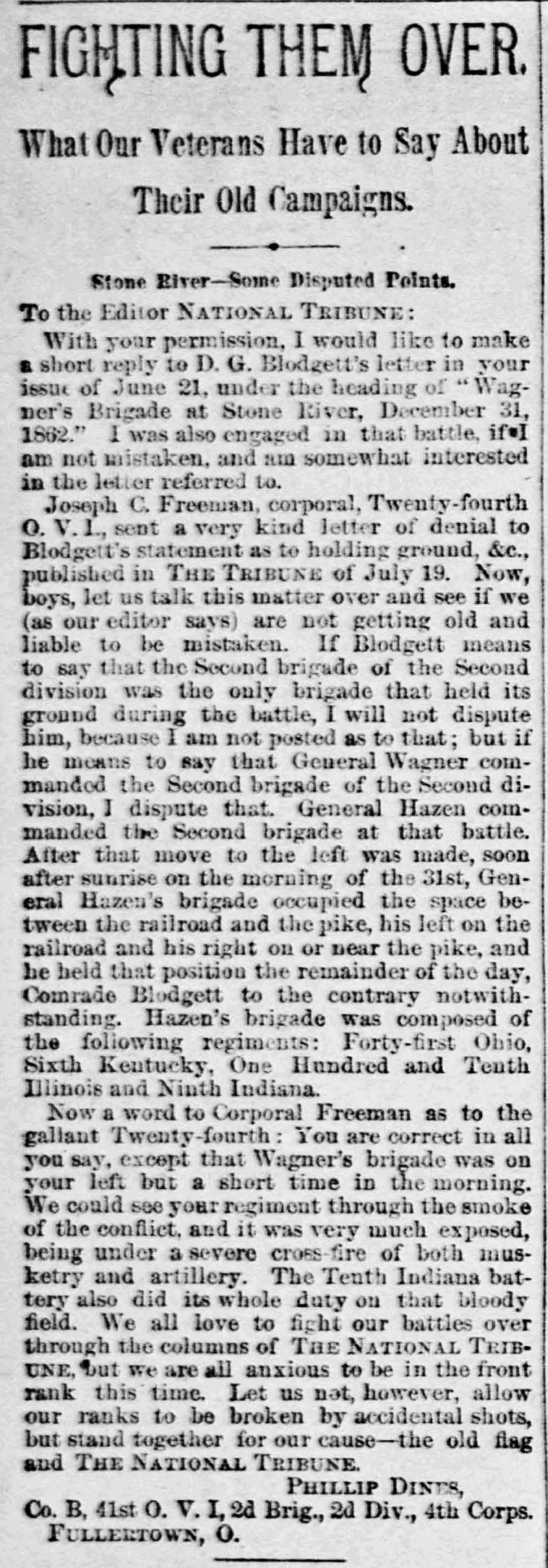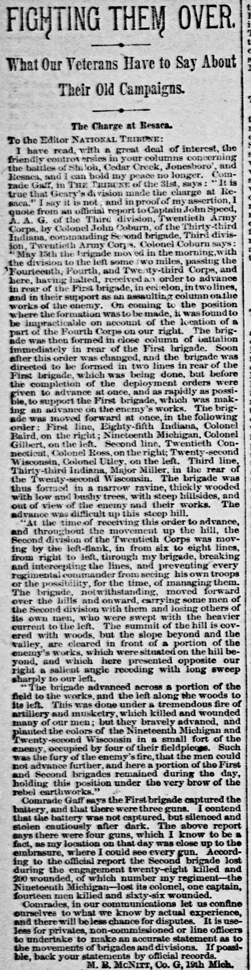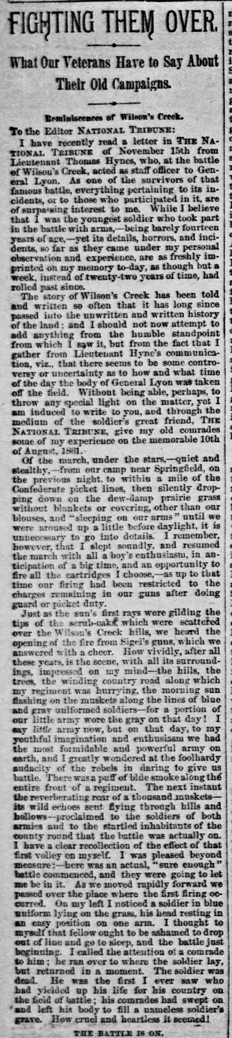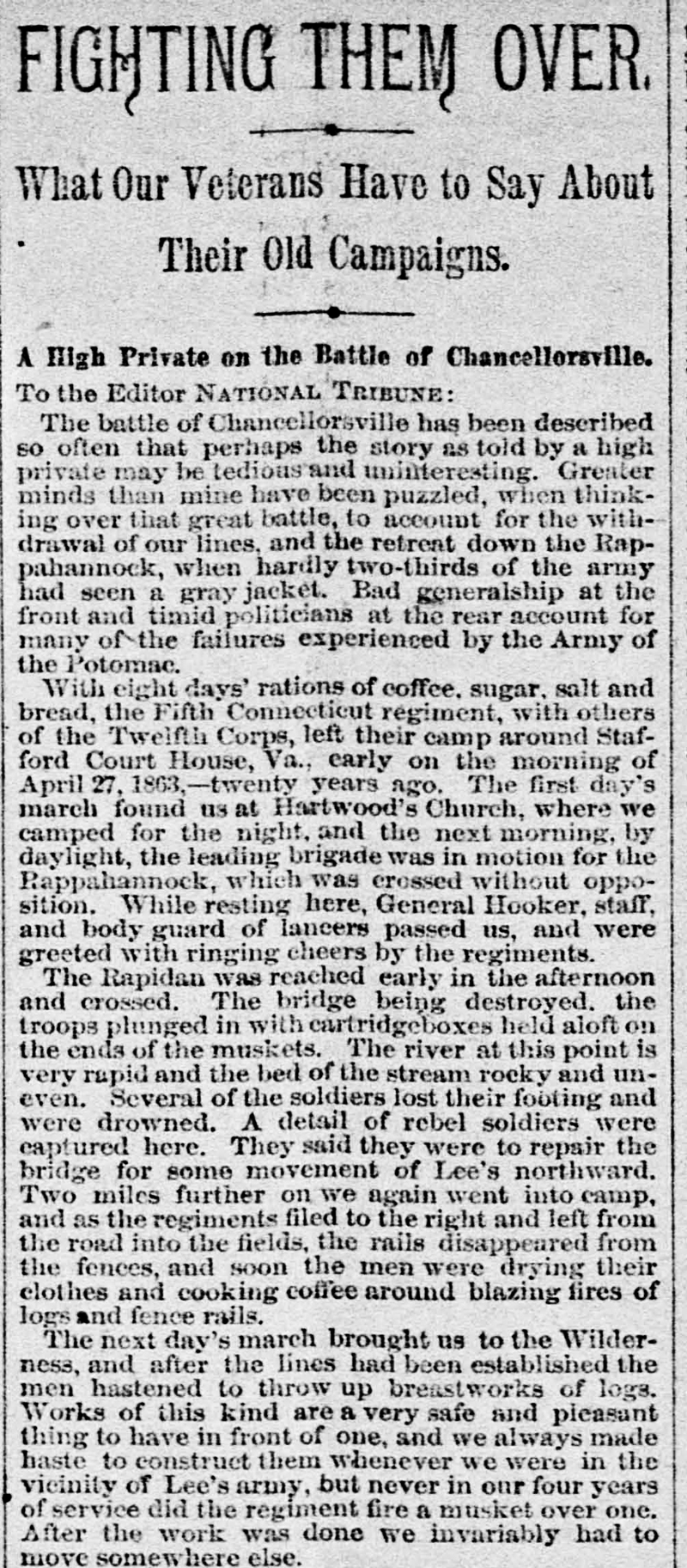 Fighting Them Over: What The Veterans Have To Say About Their Old Campaigns was a column that ran in the National Tribune from 1883 to 1903. The idea behind the column was to solicit first person accounts from veterans of the American Civil War. Here is the solicitation that ran periodically: