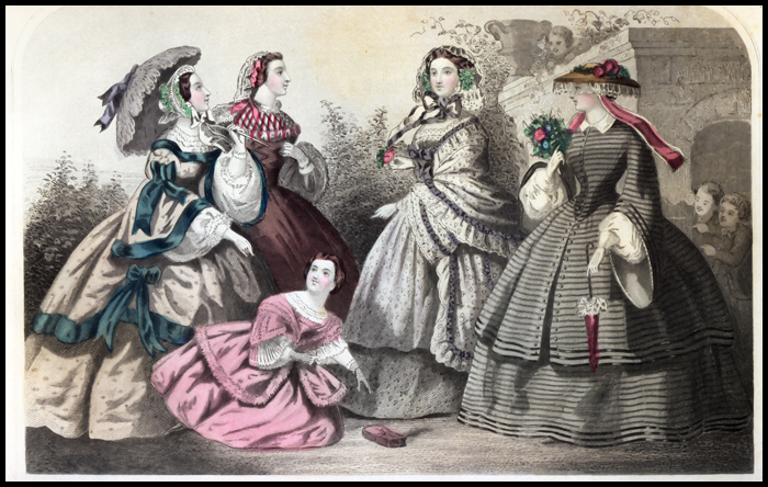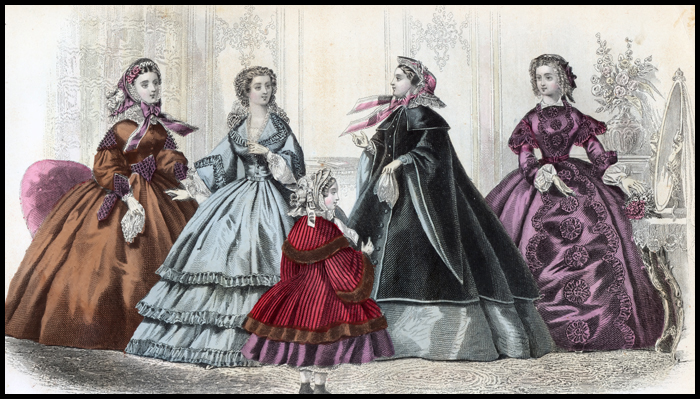 Godey’s is best known for the hand-tinted fashion plate, which appears at the start of each issue and provides a record of the progression of women's dress. By 1859, Godey paid $105,200 to produce the Lady's Book, with the coloring of the fashion-plates costing $8,000. Almost every issue also included an illustration and pattern with measurements for a garment to be sewn at home. A sheet of music for piano provided the latest waltz, polka or galop.