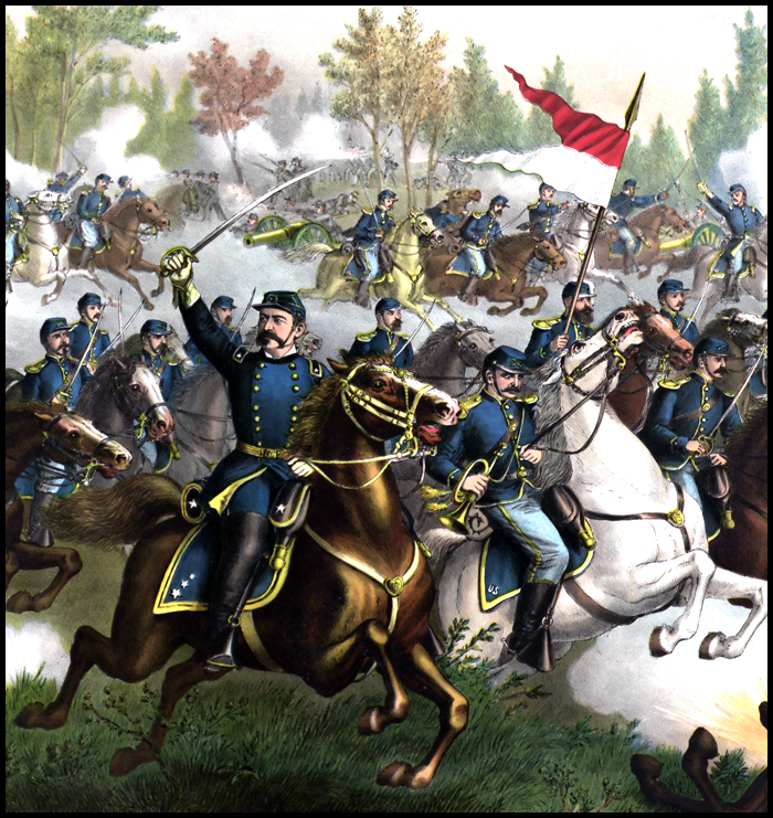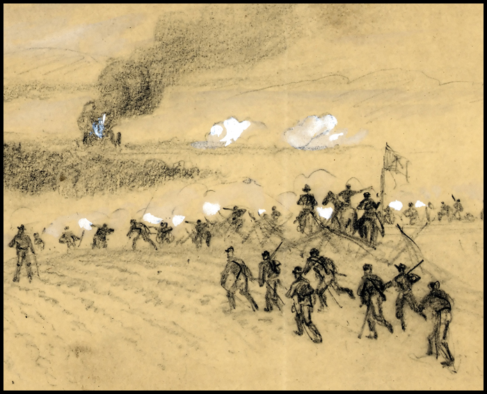 Artwork Detail: Rosser attacking the rear--Oct. 8th 1864 nr. Harrisonburg. Shenandoah Valley.