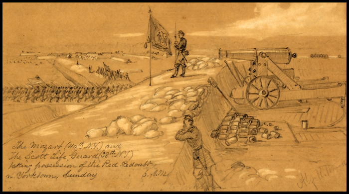 Artwork detail: The Mozart (40th N.Y.) and the Scott Life Guard (38th N.Y.) taking possession of the Red Redoubt